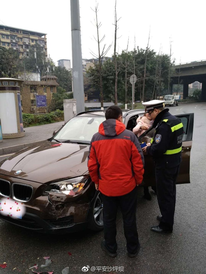 沙区110快处队巡逻民警发现该情况后,立即上前指挥交通,并联系了交巡警前来处理。