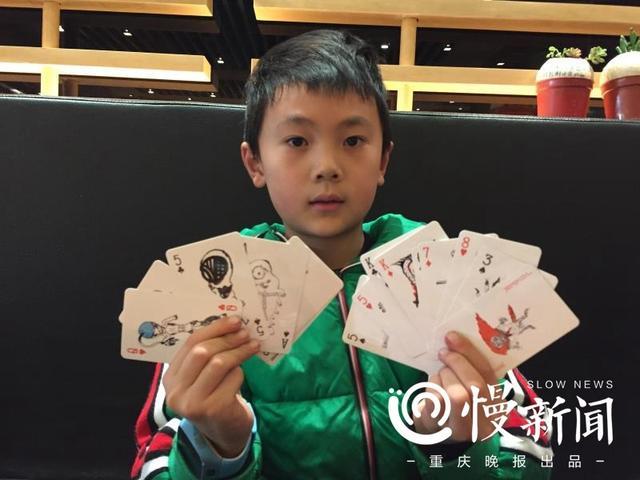 1月31日晚,记者在杨家坪西城天街见到了陈女士和她8岁的儿子吴予辰,同时他们还带来了晒在朋友圈的“扑克牌”。