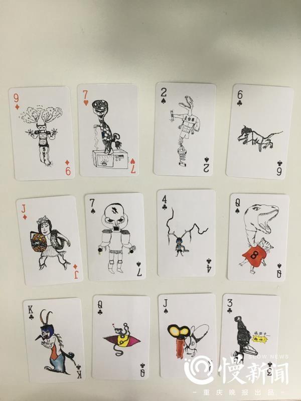 家住重庆九龙坡区直港大道的陈女士喜欢在朋友圈“晒”生活,但最近,她晒出的一条消息在朋友圈引起了轰动,朋友们大赞“太有才,太有创意”。原来,陈女士在朋友圈晒出的是一副扑克牌,扑克牌上的54幅画是她8岁儿子的作品。