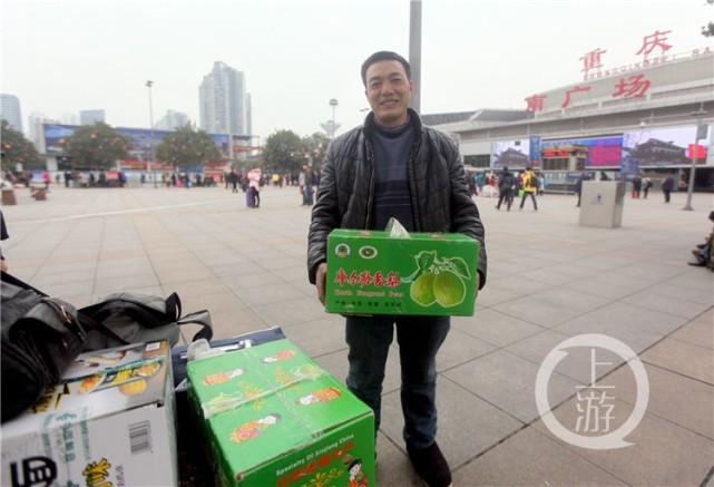在火车站的广场上,有一对老人坐在花台边。两件甘肃有名的“静宁苹果”放在一旁。老人姓袁,“儿子过年不能回家,我们老两口特意来重庆和儿子一起过年,带了两件甘肃的苹果当年货。”就要见到在外工作的儿子,两位老人满脸的幸福笑容。