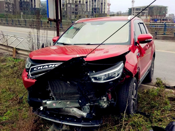 2018年1月27日早上,重庆长寿经开路,一司机在驾驶途中打了个“盹”,致使自己驾驶的红色越野车连续横跨几个车道后径直撞上对向车道的护栏,并冲向路边的悬崖,场面惊险万分。