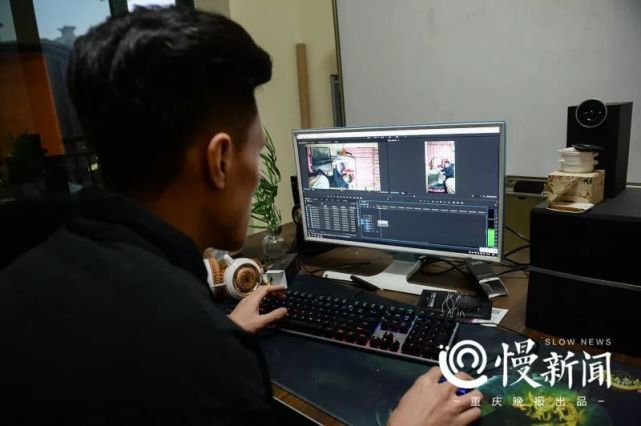 ▲李浩东独自一人在工作室剪辑拍摄视频。