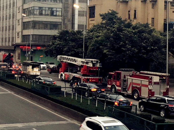 事发后,杨家坪消防出动了9辆消防车赶赴现场参与救援。