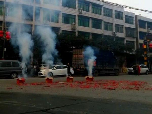 2018年2月6日,有网友爆料称,在重庆垫江某乡镇,有人居然在大马路中间,燃放烟花爆竹。四桶大烟花齐放,声音震耳欲聋,烟花纸满天飞,空气中弥漫着火药的味道和朦胧的烟雾,周围还停放着不少车辆。