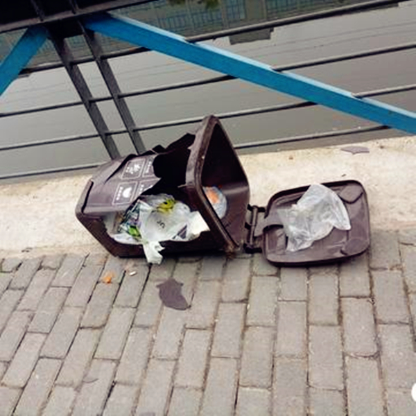 2018年2月7日,璧山区青杠实验小学附近的沿河步道上,好几百米沿河路段之间的垃圾桶遭遇劫难,全部被恶意破坏掉,遍体鳞伤,垃圾桶里面的垃圾散落出来,一片狼藉。