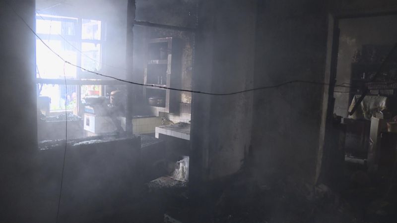 大火被扑灭后,记者进入到了屋内,屋子里仍然充斥着浓烟,屋内被烧得漆黑一片,满地狼藉,所幸的是由于扑灭及时,火势没有蔓延到其他住户。目前起火原因还在进一步调查当中。