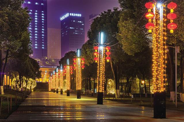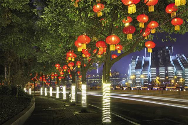 作为内陆开放门户、现代化大都市的展示窗口,江北的迎春灯饰凸显出深厚的时代性以及浓郁的时尚性。