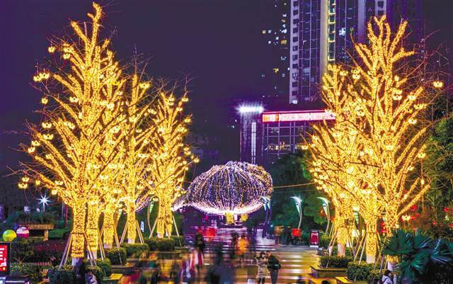时至新年。随着迎春灯饰的逐一点亮,江北夜色更添精彩。