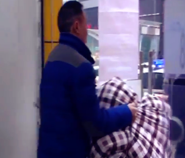 随后,民警赶到现场询问情况。只见这位男子衣着整齐地坐立在地铺里,看着约有40来岁,可这天寒地冻的,真担心男子的身体会感冒。