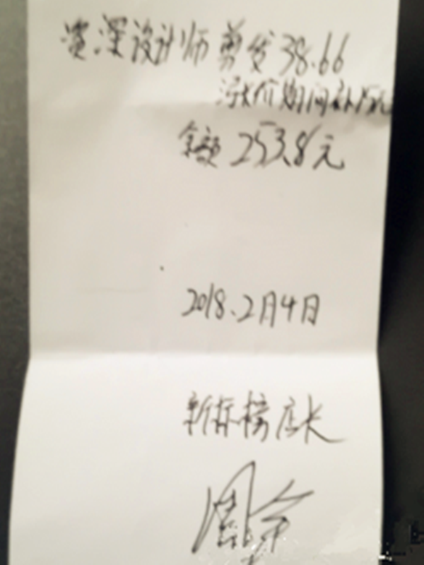 因为有急事儿,报料市民补了15元差价,与店员要票据但也没给,但店长给了报料市民一张手写字条。