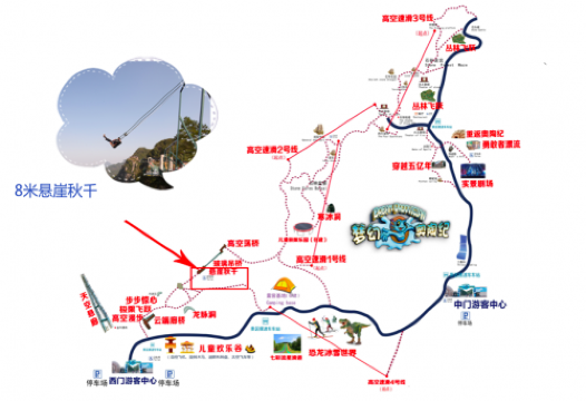 玩法建议:悬崖秋千是恐怖,要尽兴一定要尝试180°回荡的8米悬崖秋千