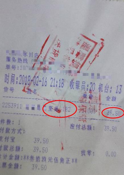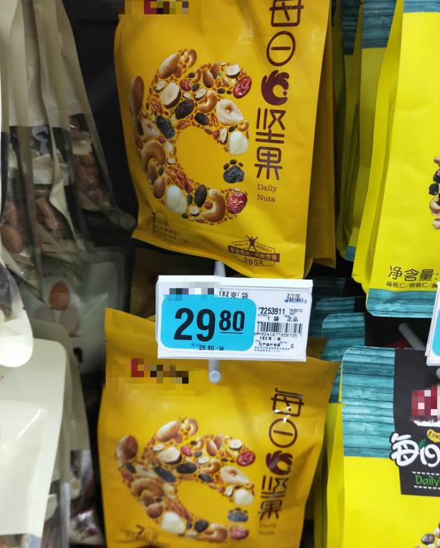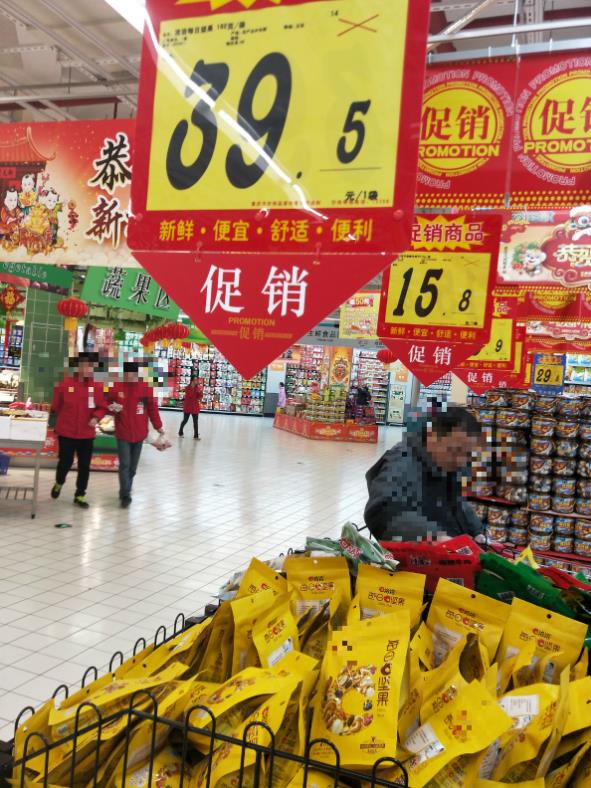 2018年2月16日,一位来自重庆永川的市民报料称:在超市采购零食,买了一袋182g的坚果,付钱时发现价格是39.5元,但报料市民说印象中价格是29.8元,为了印证自己的记忆,再次回到货架上确认情况,结果还真是原价29.8元,促销价却是39.5元。