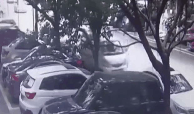 男子车停路边去吃饭 回来后发现车竟“无人驾驶”追了尾