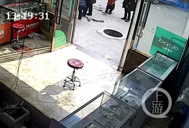 熊孩子朝下水道扔鞭炮 炸飞两个水泥井盖
