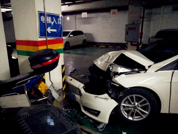 “都看不出来是回车库,还是出车库,在库里都撞成这样了,如果出去还得了”一旁路过的人说着,“开车还是要注意安全,不论在哪里。”