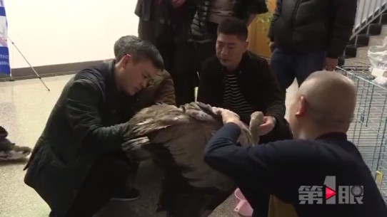 经林业局救助站工作人员检查鉴定,该动物属国家重点二级保护动物灰鹤,腿部骨折伤势严重,工作人员立即对其进行包扎、内服消炎药等处理,并给它准备了食物。