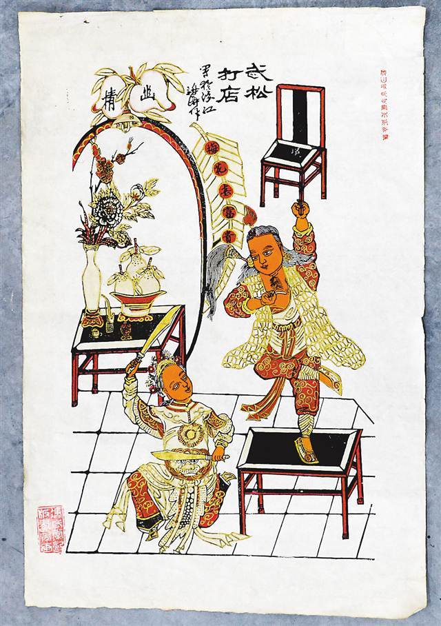 佛山描金年画:武松打店。
