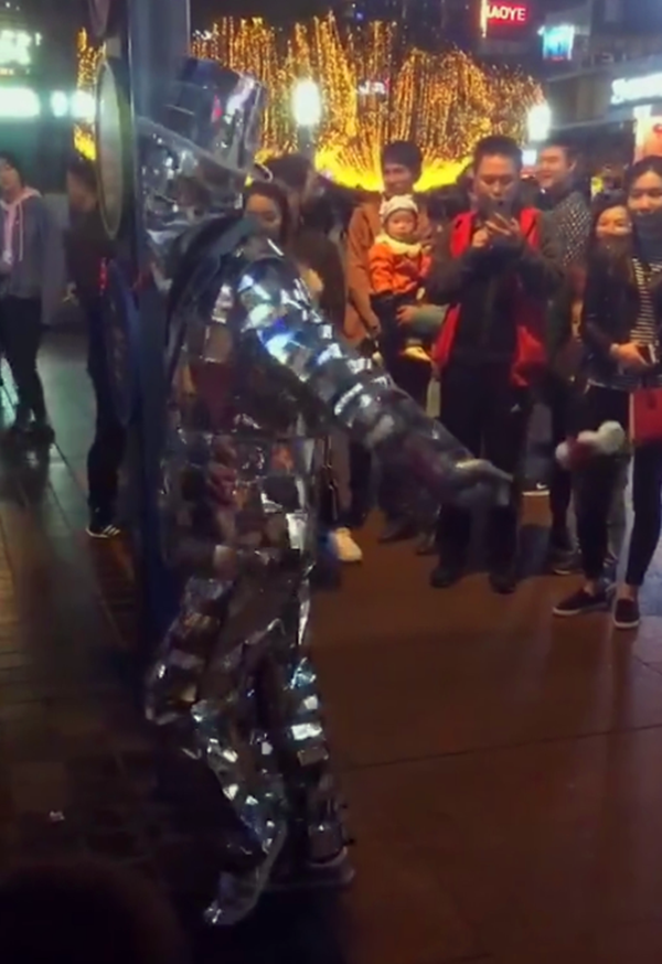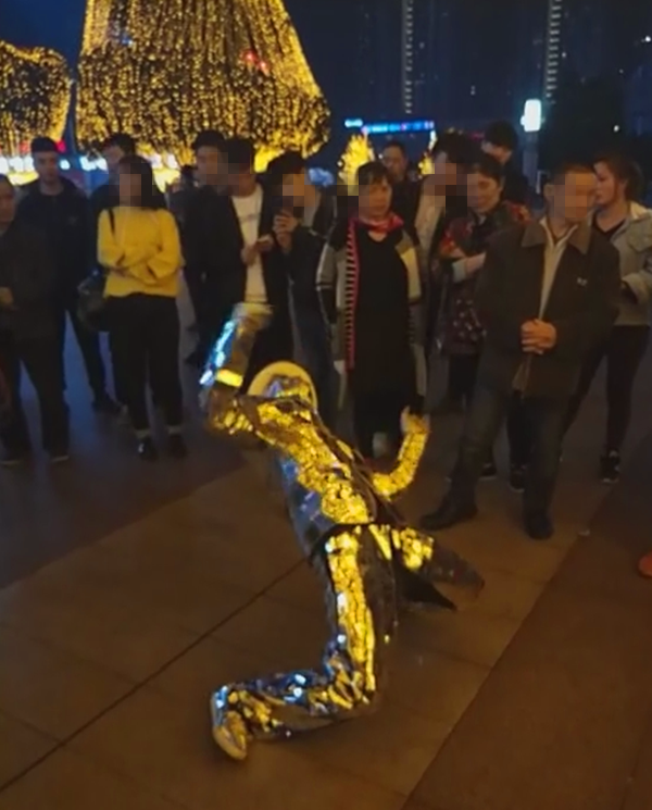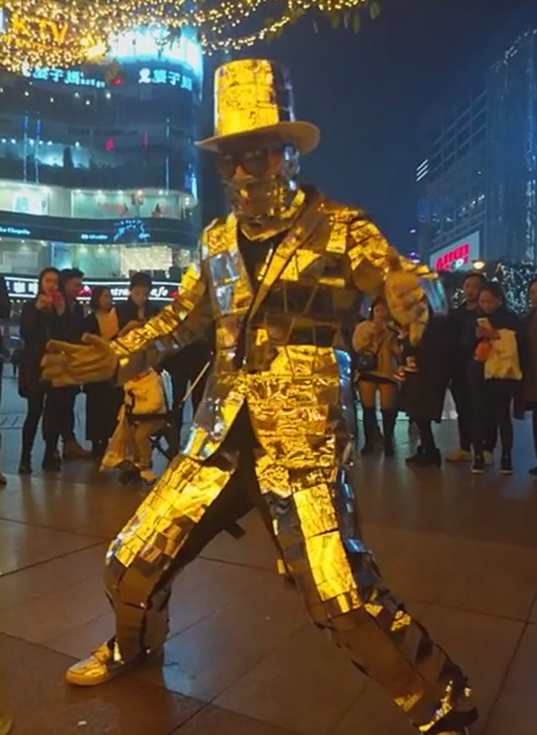 男子穿“盔甲银衣”在街头热舞 特立独行引围观