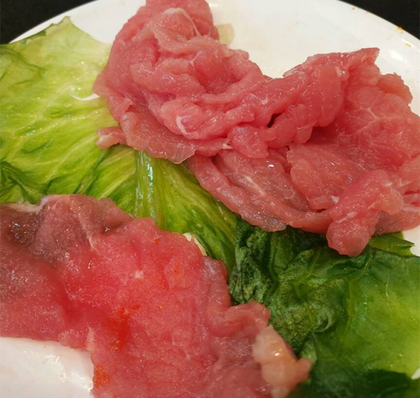 正常的牛肉颜色应该是深红的的,而且肉的纹路比较深。爆料网友看着肉就觉得不对劲,吃着也完全不是牛肉的味道。找到服务员问情况,可对方却说:“这就是牛肉”!