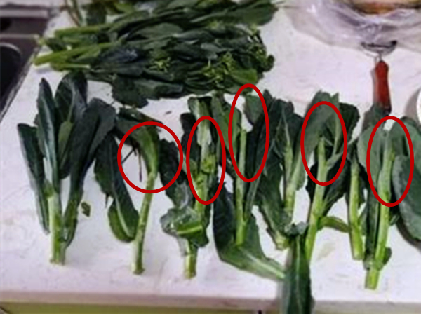 顾客买菜被套路 菜心买回家成了“光杆子”