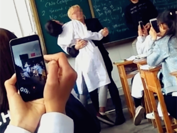 据了解,视频录制于重庆合川一学校的一间教室里,开始外语老师在讲台上讲课,学生坐在下面听课,但画风突变。