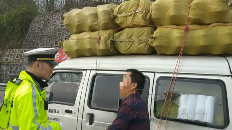 上午8点半左右,高速执法人员在沪渝南线南岸收费站设卡检查时,发现一辆面包车顶部满载包裹,执法人员立即拦下进行检查。