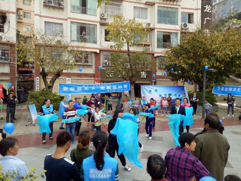 活动现场,自闭症儿童表演了合唱《不要认为自己没有用》、朗读《爱》等节目,并开展了用爱画“心”活动,让自闭症儿童能展现自我,融入社会,26组家庭和志愿者手戴蓝丝带参与活动。