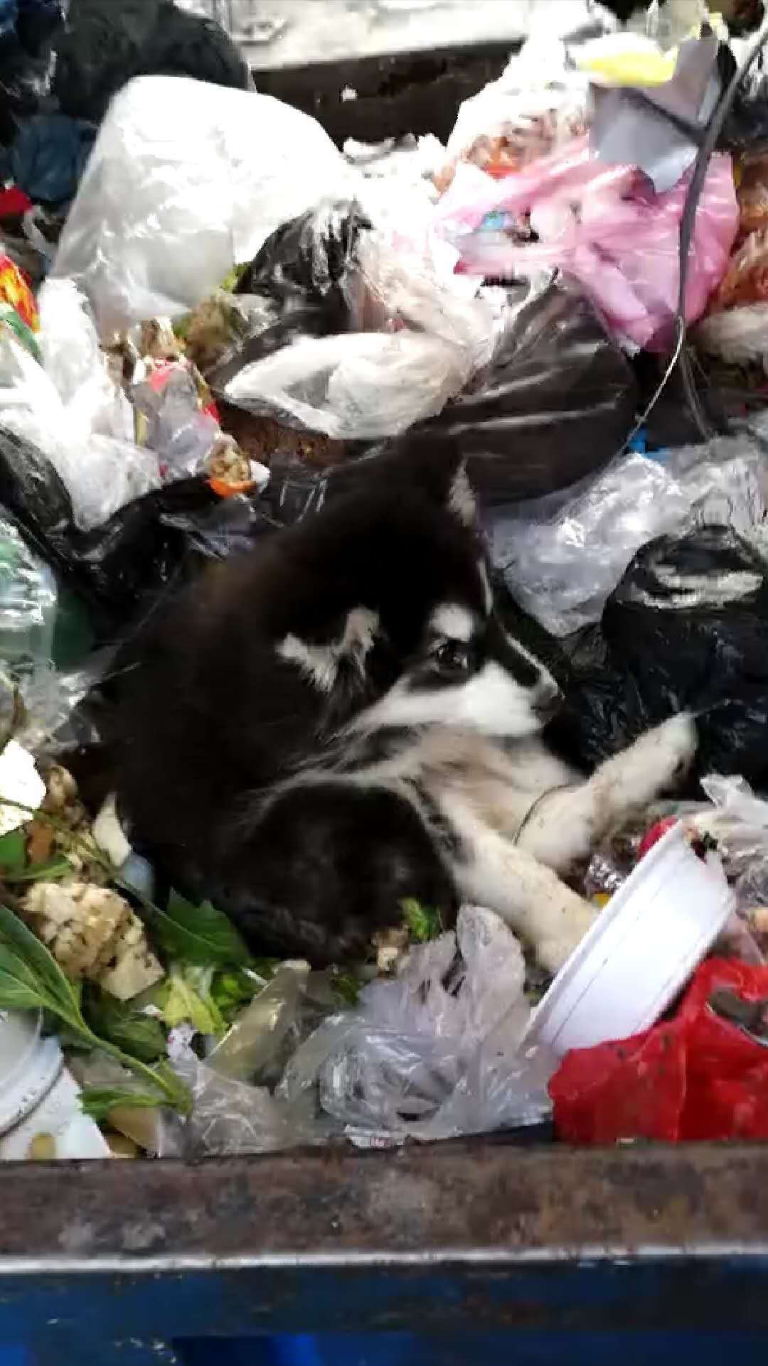 夏先生路过永川区铁桥附近的垃圾箱时,发现箱内有一只阿拉斯加。夏先生尝试着叫了它一声。