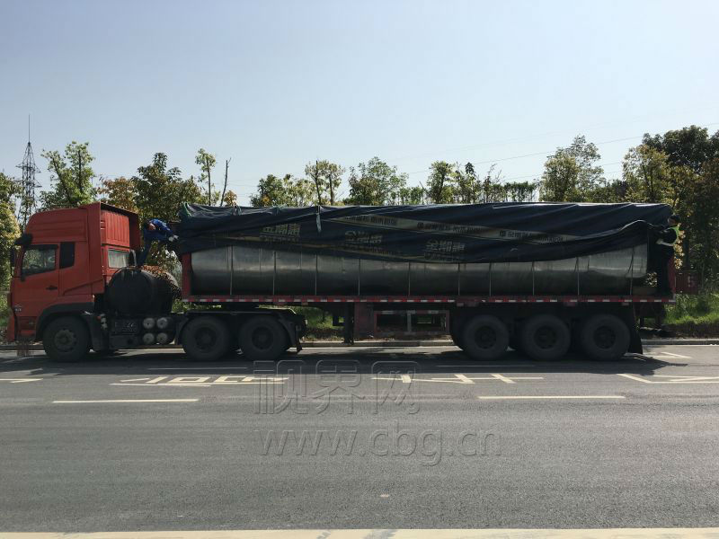 拆开防水布可以清晰的看到,原来的货车车厢已经被一个巨大的椭圆形罐体所占据,据驾驶员陈述,该罐体长10.5米,一次性能装28吨左右的货物,改装后他一般用于运输沥青等货物。