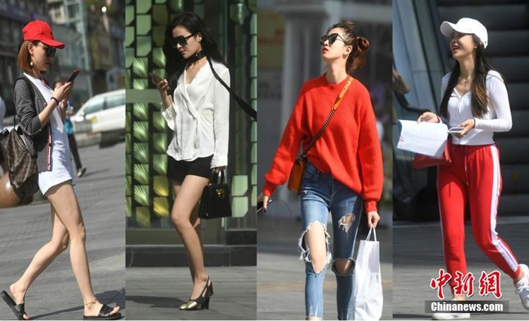 主城气温逼近30℃ 山城美女着装清凉出行