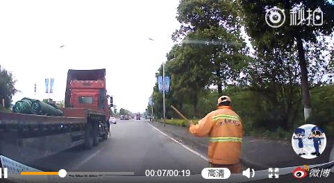 司机自认技术过硬“钻缝缝” 视频记录挂倒清洁工惊险一幕