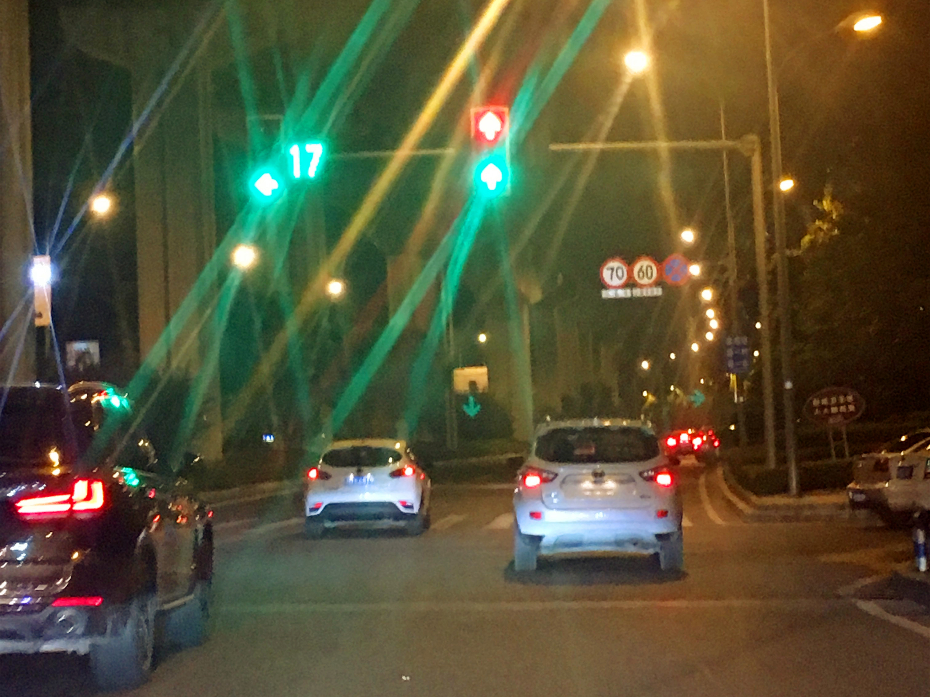重庆时间提醒大家,当车主们遇见这种情况,可放慢车速,观察路况后再慢速通过路口。