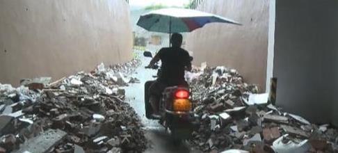 建筑垃圾占据小区道路 数百米场面“壮观”