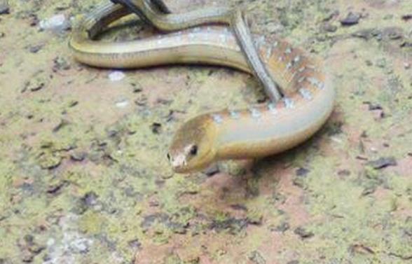 从护林员拍摄的照片来看,这种生物有些像蛇,但从头部看,又有点像黄鳝。更奇特的是它的身子上半段较粗,但在下半段突然就变细了。
