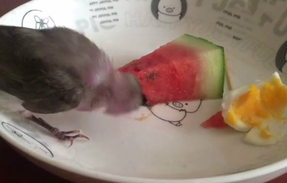 重庆现奇葩小鸟 沉迷吃瓜无法自拔