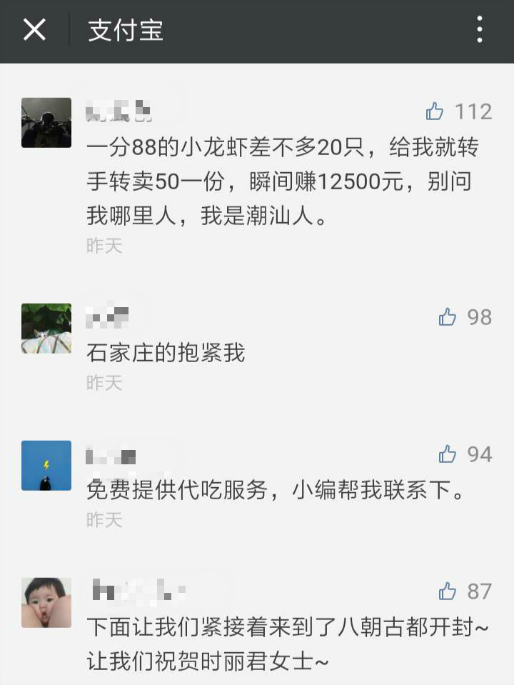 重庆美女获赠5000只龙虾 支付宝:能否吃完与我无关