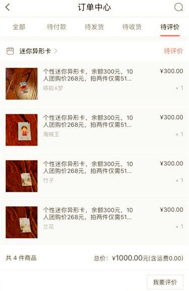 谢女士说那简直觉得划算得不得了,于是微店第二次搞活动的时候,又买了一批,每张卡内有300元额度,只需要支出现金250元钱就可以获得。