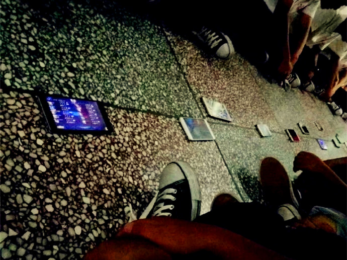 大家都两边靠墙,惦着脚站着,在脚后跟和地面形成夹角的地方,被放进了手机。