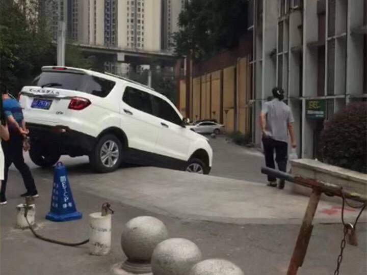 该小区居民介绍,这样的事情一个月要发生很多次,熟悉路的司机还好,不熟悉路的就跟着导航直接开下去,半个车身悬在梯坎上,前进也不是,后退又退不上去。