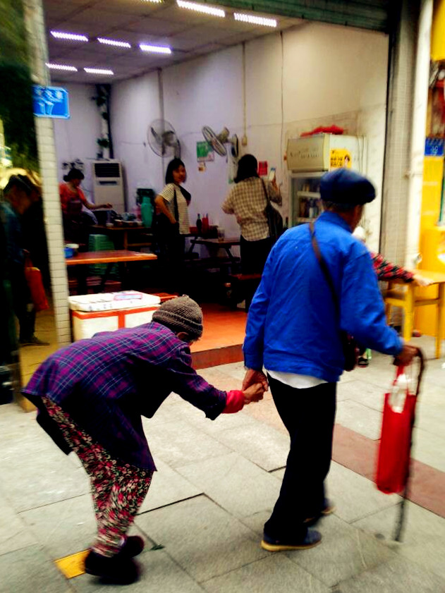 老太牢牢牵着大爷的手,感觉两个人的力量足以抵抗时光的流逝,他俩走起来虽然蹒跚,但是坚定。