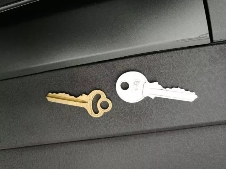 说着,老板将原配钥匙和配好的钥匙摆在一边,意思就是你可以走了。