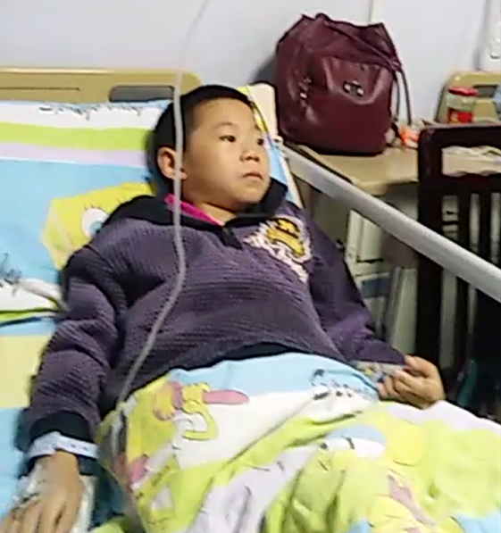 王中秋输液的第6天,因为左手扎了太多针眼,护士要给他扎右手,王中秋哭着不让,妈妈一番询问下,王中秋带着哭腔说道:扎了右手就不能写作业了。