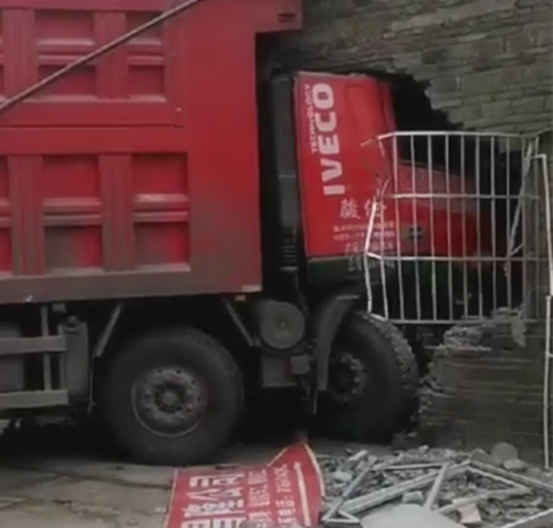 大货车的半个车头已经陷进墙里,大伙见状赶紧报了警。