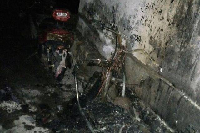 居民楼深夜起火 3辆摩托车被烧只剩骨架