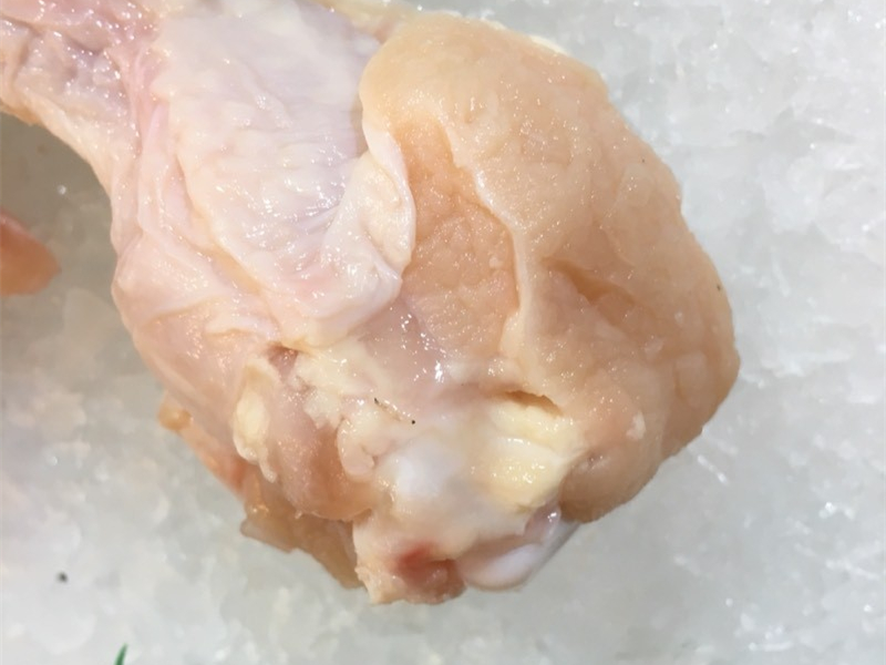 小钱将其中一只看起来不错的鸡腿翻过来,仔细的看了看,没想到竟看到鸡腿上长蛆了。一只如米粒般大小的蛆还蠕动着,让小钱看后直打冷颤。