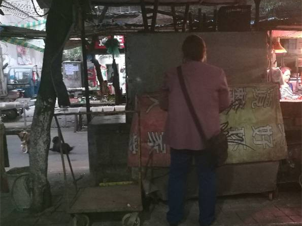 可当天一大早,对面的一个老太太来到摊位上,就开始一阵大骂,说是这位大姐故意将一个装猪肉带血的破塑料袋扔在了她家的摊位上,于是一边大骂,一边将塑料袋扔到大姐摊位前。随后,老太将自己摊位上的垃圾全部扫到人行道上。
