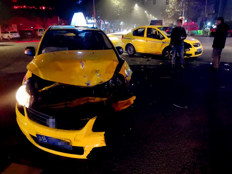 两辆出租车惨烈相撞 满地残骸现场狼藉一片