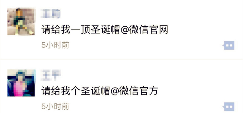 很多网友都以为“@微信官方”后,就会拥有一顶能与头像完美搭配的圣诞帽,便不停地在自己的朋友圈里“@微信官方”。