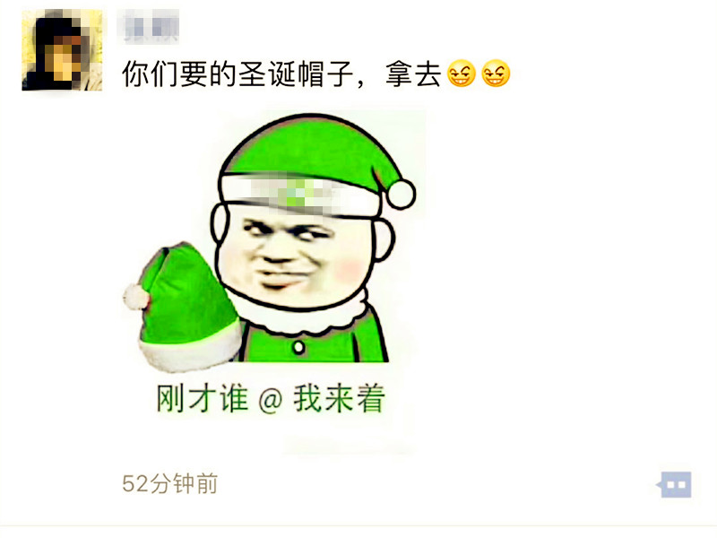 重庆网友的朋友圈里也炸开了,各式各样的花样求帽层出不穷,都“@微信官方”想让自己的微信头像拥有一顶圣诞帽。