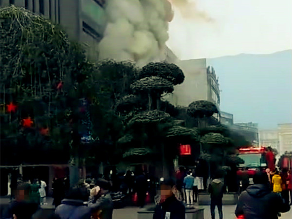 重庆一步行街突发火情 火焰猛烈黑烟冲天